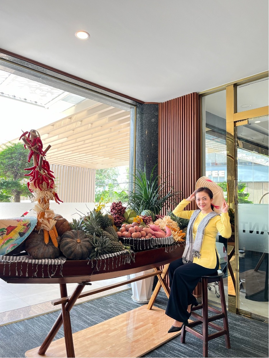Đội ngũ nhân viên thân thiện trong những chiếc áo bà ba, những tà áo dài góp phần tái hiện một miền Tây sống động ngay tại khách sạn.