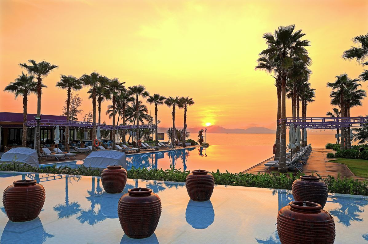 Thư giãn bên hồ bơi vô cực tại TTC Van Phong Bay Resort và đón bình minh Dốc Lết dần dó dạng.