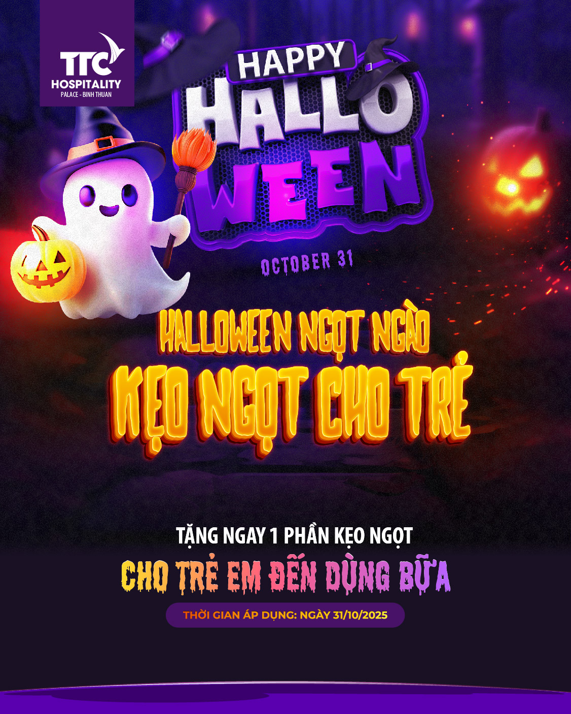 Dù bạn thích chill bên biển, thưởng thức tiệc buffet hay đơn giản là cùng con trẻ nhận kẹo ngọt, mỗi điểm đến TTC Hospitality đều mang đến một câu chuyện Halloween riêng – vừa ma mị, vừa đáng yêu và ngập tràn niềm vui.