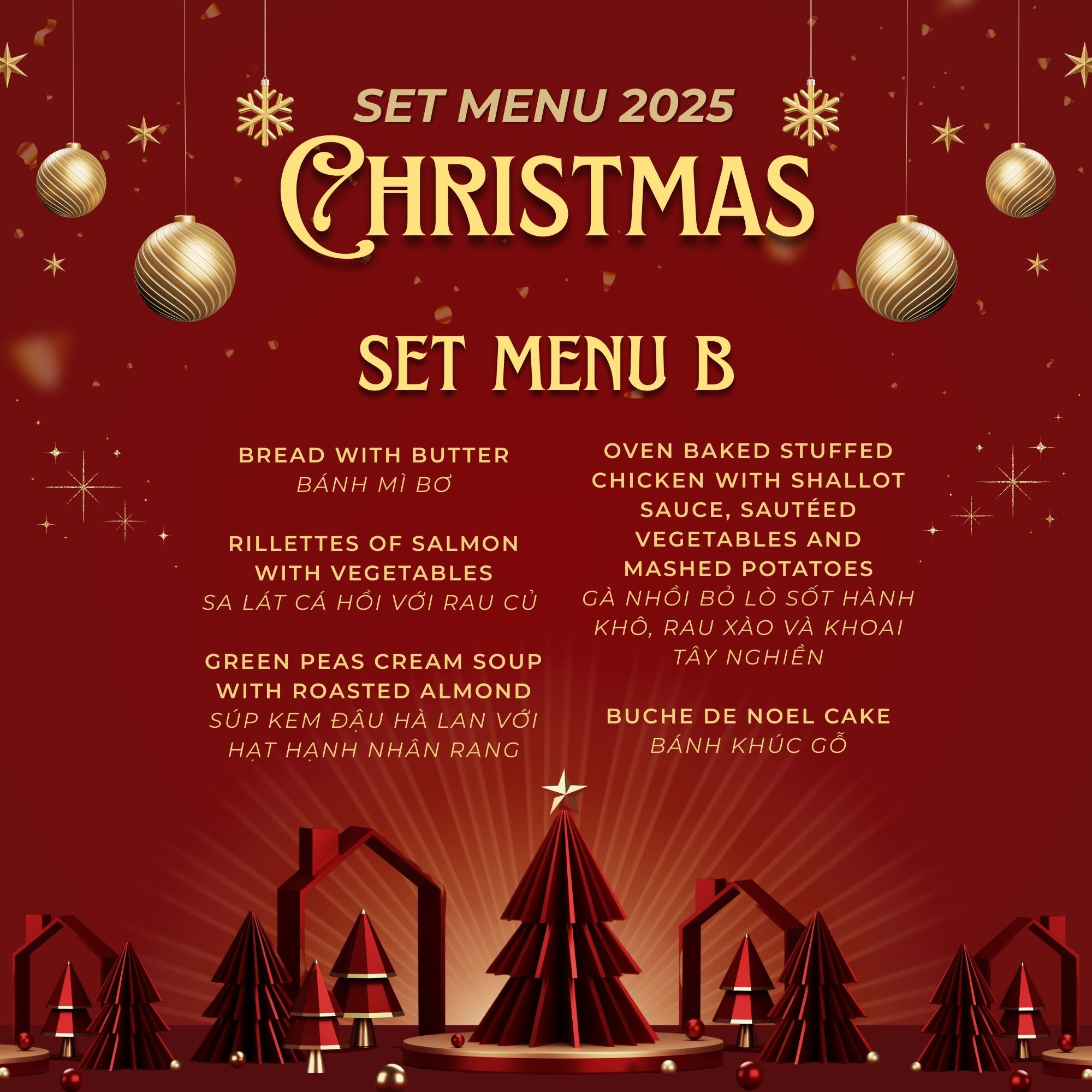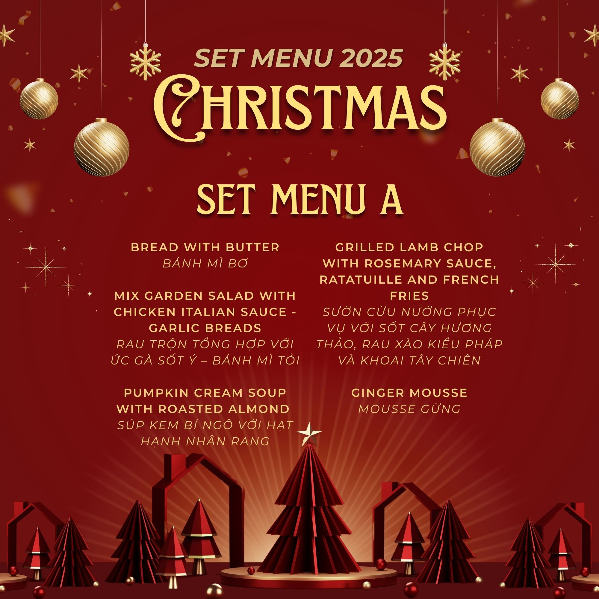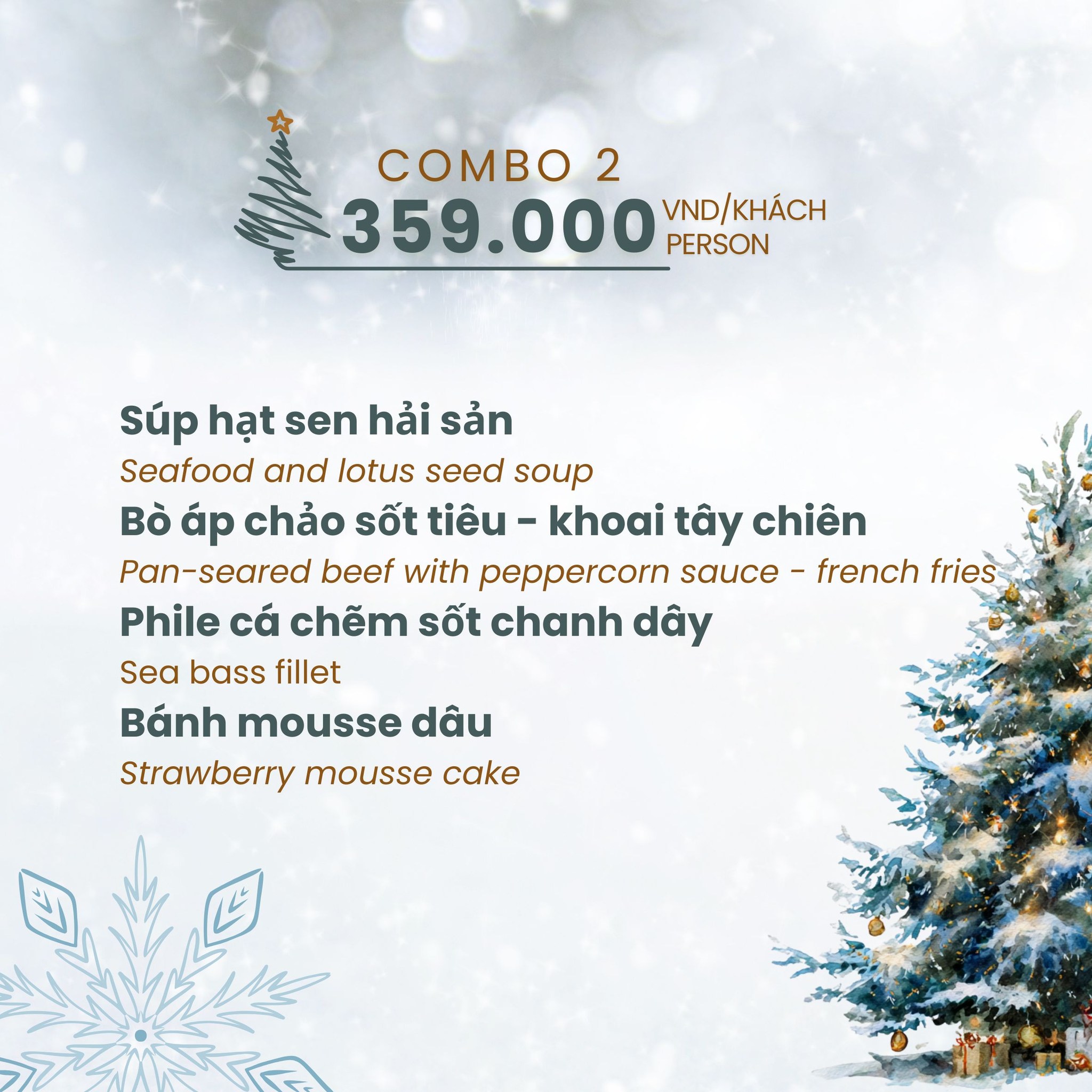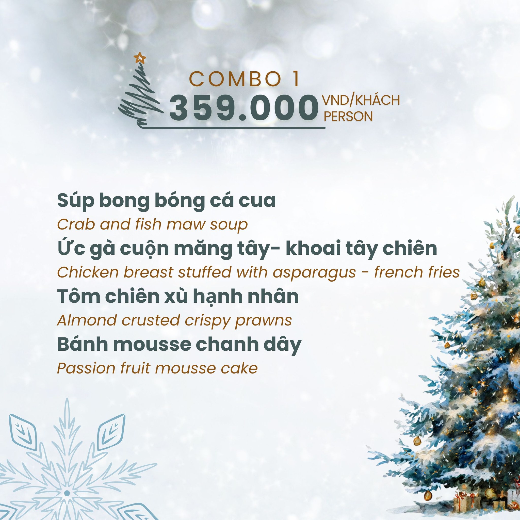 Một hành trình ẩm thực đầy cảm hứng, hòa quyện giữa tinh thần lễ hội và sự chăm chút trong từng món ăn – mang đến trải nghiệm ấm áp, trang nhã cho bữa tối Giáng sinh của quý khách.