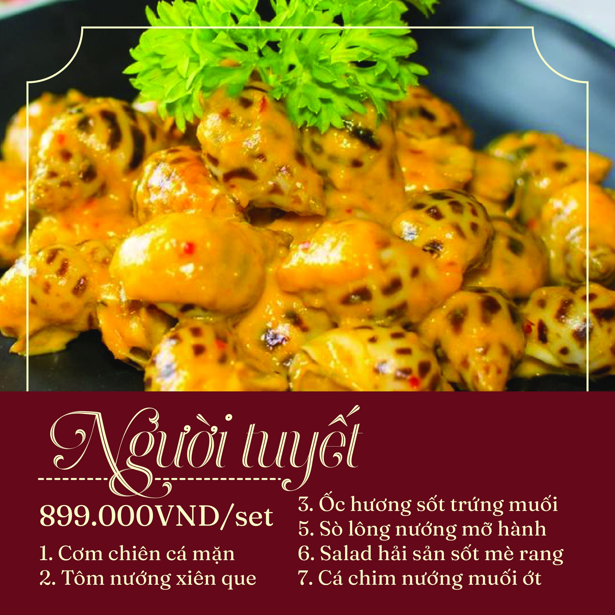 Mỗi set đều được thiết kế với các món hải sản đặc trưng, phù hợp nhóm 3–5 khách, mang đến bữa ăn ấm cúng trong không khí Giáng sinh rực rỡ.