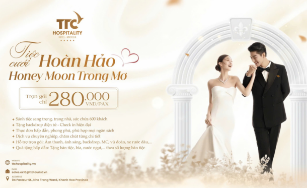 TIỆC CƯỚI HOÀN HẢO, HONEYMOON TRONG MƠ – Ưu Đãi Độc Quyền Tại TTC Hotel - Michelia