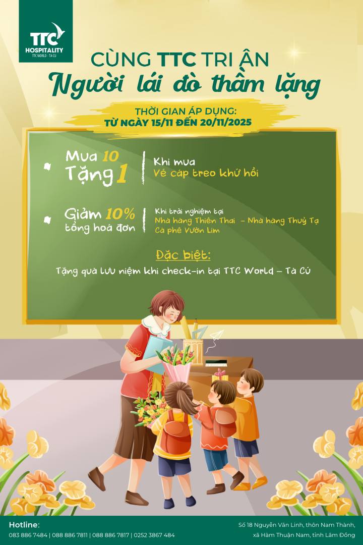 Nhân dịp 20/11, TTC World – Tà Cú kính gửi đến quý thầy cô và du khách chương trình tri ân đặc biệt: