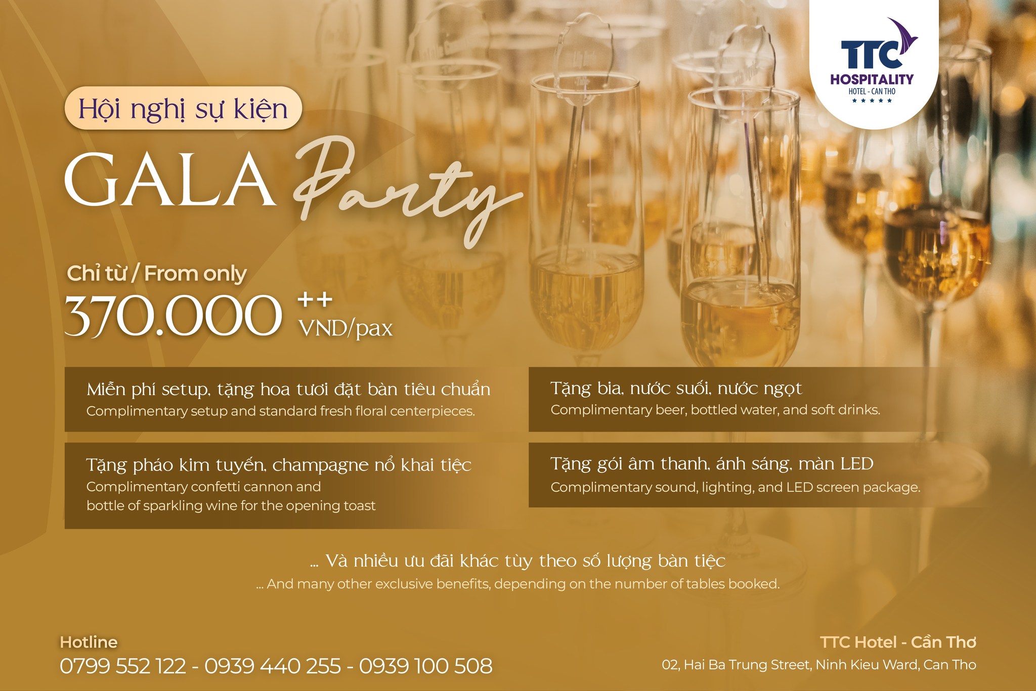 Khép lại một năm thành công bằng một buổi tiệc trọn vẹn không chỉ tạo nên những khoảnh khắc đáng nhớ, mà còn củng cố tinh thần đồng hành – gắn kết – tri ân trong mỗi tập thể. Với hệ sinh thái dịch vụ đa dạng, tiêu chuẩn vận hành chuyên nghiệp và không gian tiệc phù hợp mọi quy mô, TTC Hospitality tự hào là người bạn đồng hành cùng doanh nghiệp trên hành trình bứt phá năm mới.